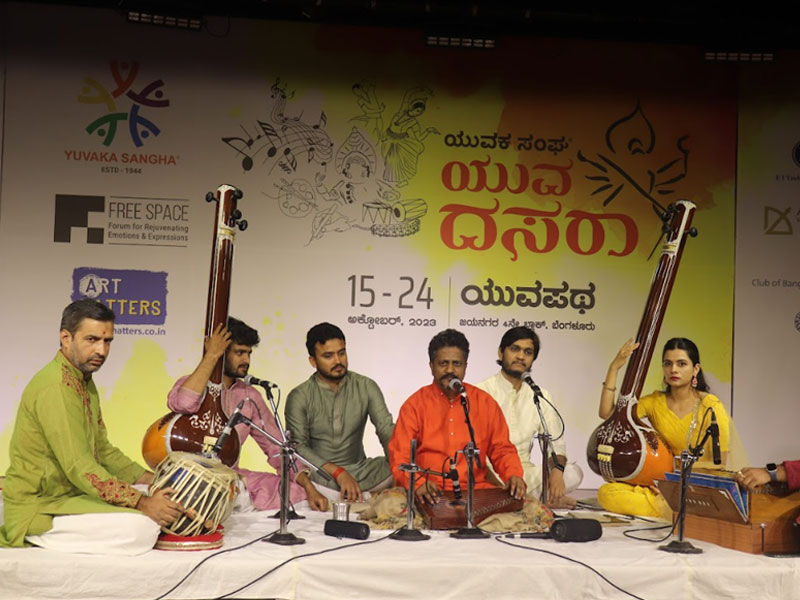 Date : 19th November, 2023 Yuvaka Sangha in association with Art Matters, Free Space and Rangoli Metro Kala Kendra organized Karnataka Kala Sambhrama where students from all over Karnataka participated and presented their art-forms, while exhibiting their skills in drawing, arts and crafts, folk dance, folk singing and more. Their artistry and passion for the